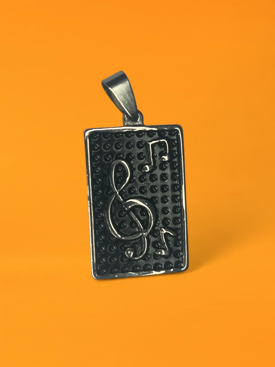 Dije Clave de Sol Fondo negro + Cadena – Acero Quirúrgico